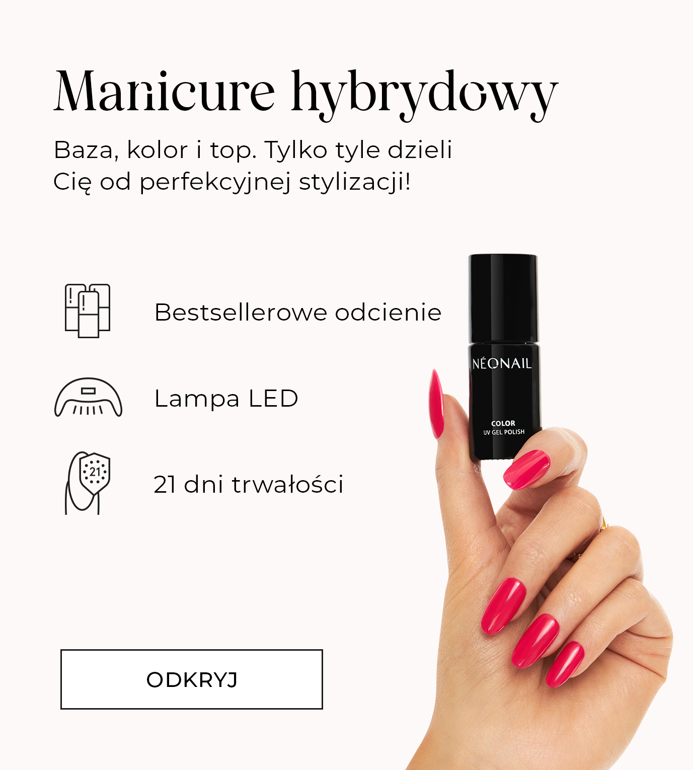 NEONAIL.pl to marka, oferująca zarówno produkty do manicure online, jak i w naszych punktach stacjonarnych. Jesteśmy Twoją wygodną alternatywą podczas zakupów, pozwalającą zaoszczędzić cenny czas. Wystarczy kilka minut, aby zamówić wszystko, czego potrzebujesz do manicure i pedicure. Zapraszamy Cię także do naszych punktów stacjonarnych, gdzie znajdziesz równie bogatą ofertę produktów do pielęgnacji dłoni i stóp.