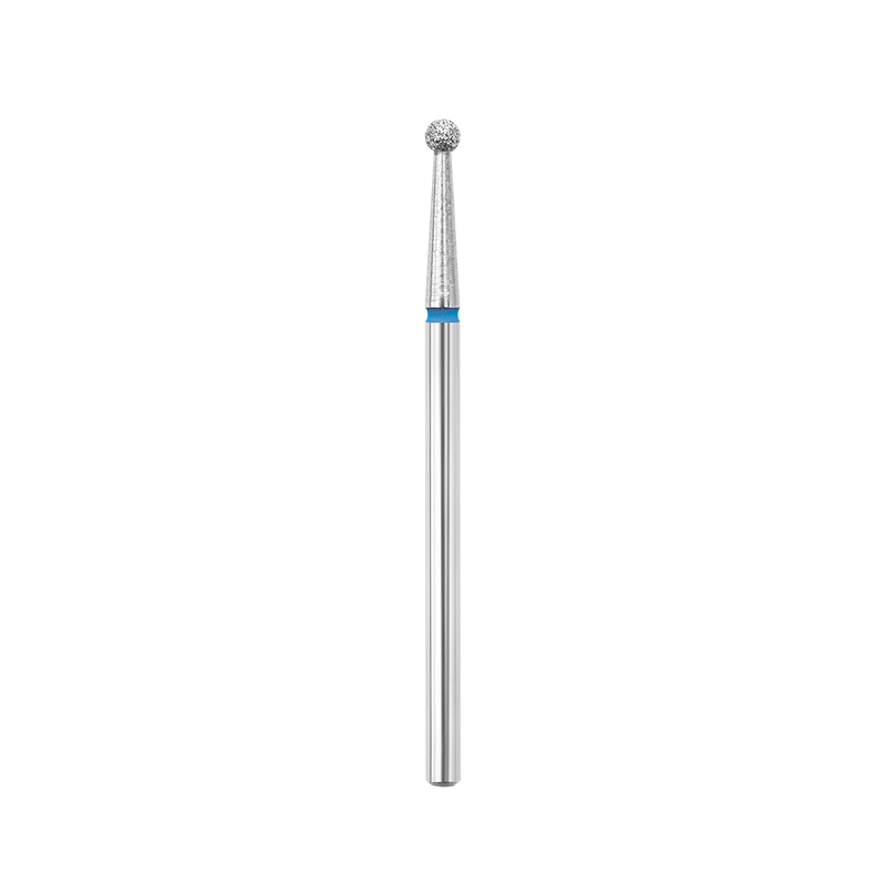 Frez Ball 02: do oczyszczania skórek i wałów okołopaznokciowych, z niebieskim paskiem – standardowy nasyp diamentowy.